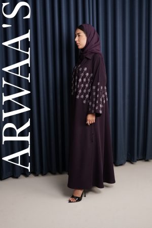 عباية تطريز من الخلف والأمام بلون البنفسجي
